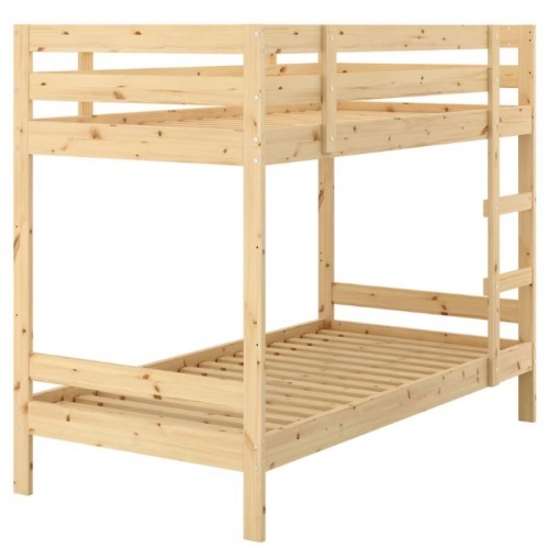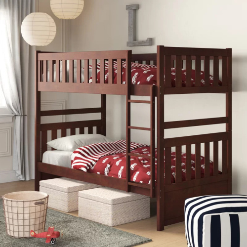 EWING – Brown Traditional Style Bunk Bed with Long Guardrails & Ladder