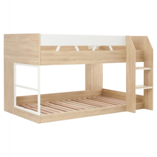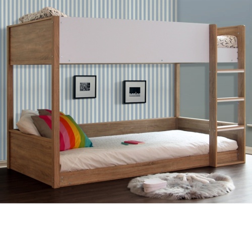 ADLEE – White & Brown Bunk Bed with Ladder and Guardrails