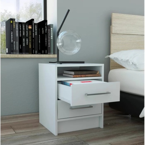TOPAZ – Bedside Dual Drawer Nightstand White