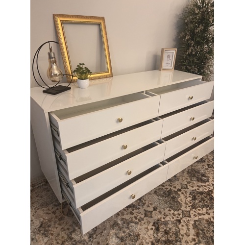 ELSAE – White Classic Chest Of Eight Drawers with Golden Hairpin Legs