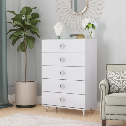 NIMA – White Chest of Drawer with Silver Handles