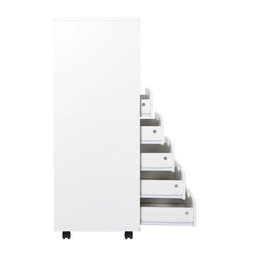 BERAT – White Five Drawer Side Dresser with Wheels