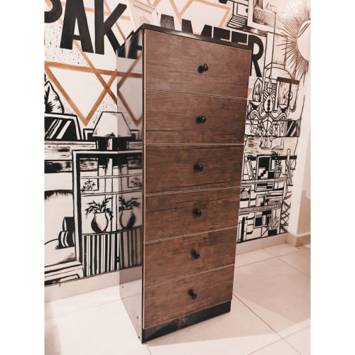 BRIMA – Black & Walnut brown Chest Of Six Drawers