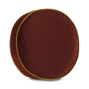 Disc Velvet Cushion in Cocoa Brown with Mustard Yellow Piping