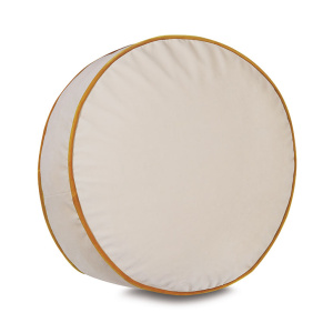 Disc Velvet Cushion in Ivory with Mustard Yellow Piping