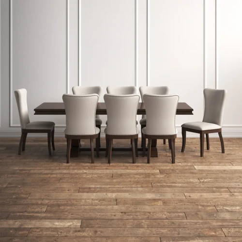 KELLY – Nine Piece Dining Table Set In Dark Brown