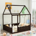 This bed offers plenty of clearance for under-bed storage & lets you kick our old box spring to the curb. It is available in a dark brown polish finish and crafted from solid and synthetic wood. A single bed size kid bed with a simple, rectangular headboard and rails, while tapered feet offer a hint of flair. Sporting a clean, minimalist design, this bed can be dressed up to fit any look you’re after. The mattress is not included.