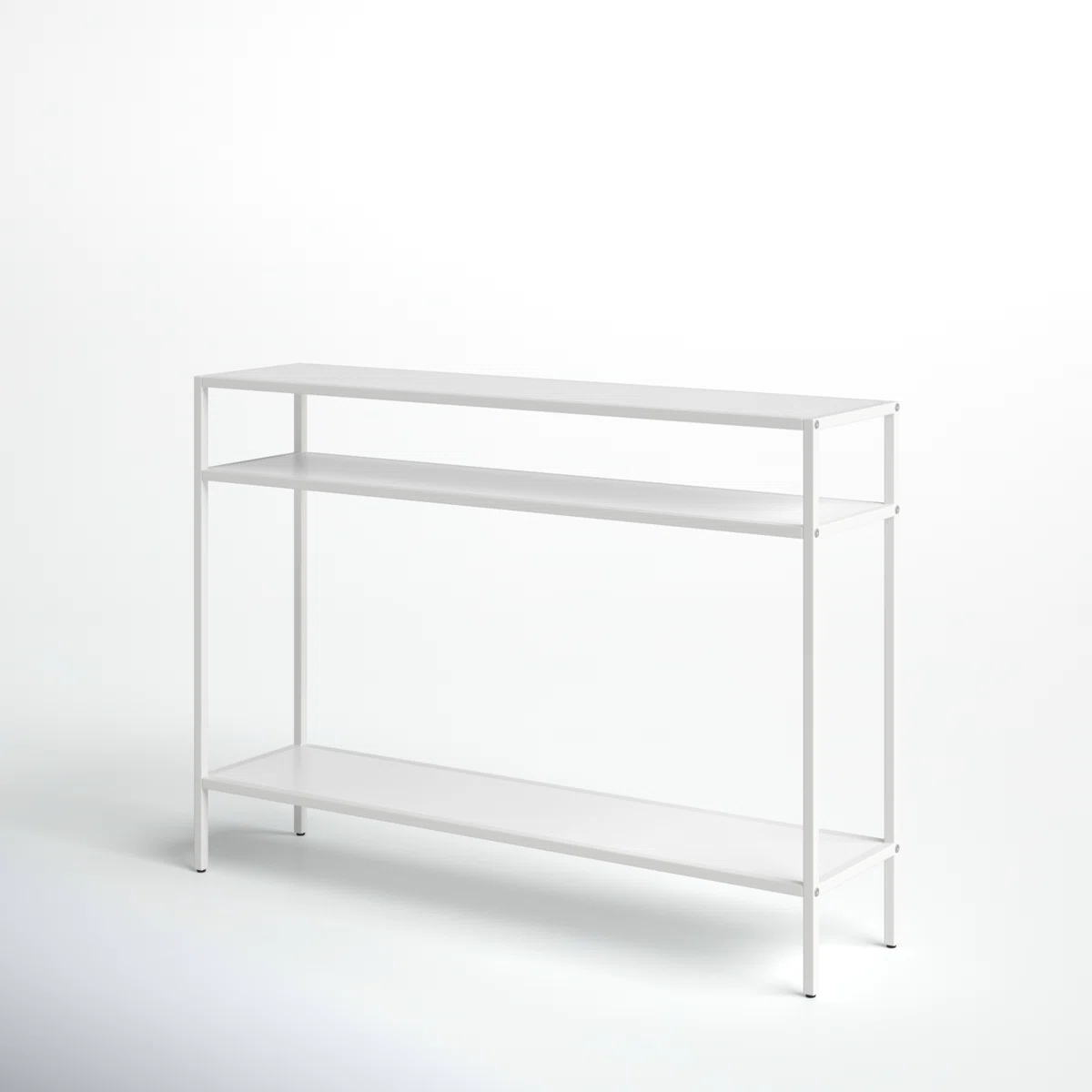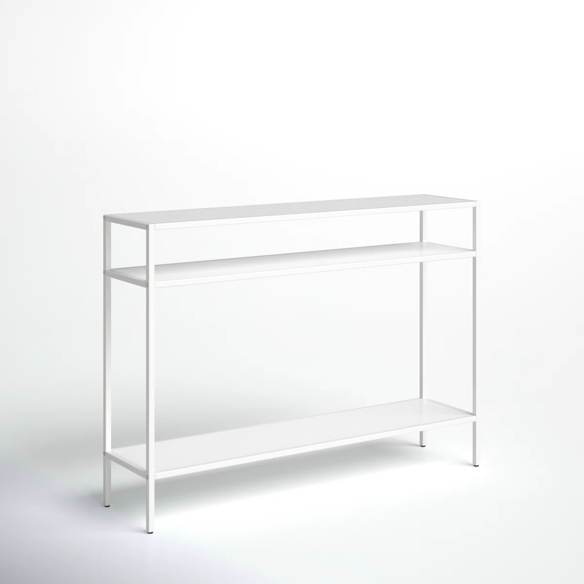 Sleek, lightweight, and effortlessly chic, this console table brings a touch of modern elegance to any space. Crafted with precision from wrought iron, this piece combines strength with simplicity. Finished in a powder-coated matte white, the table’s clean lines and smooth surfaces exude a minimalist sophistication. Its thin metallic shelves provide ample space for décor, books, or daily essentials, maintaining a clutter-free, airy look. Perfect for a hallway, entryway, or behind a sofa, this table adds understated luxury without overwhelming the room. Whether used to display plants, vases, or art pieces, its crisp white finish enhances brightness and balance in any interior setting.
