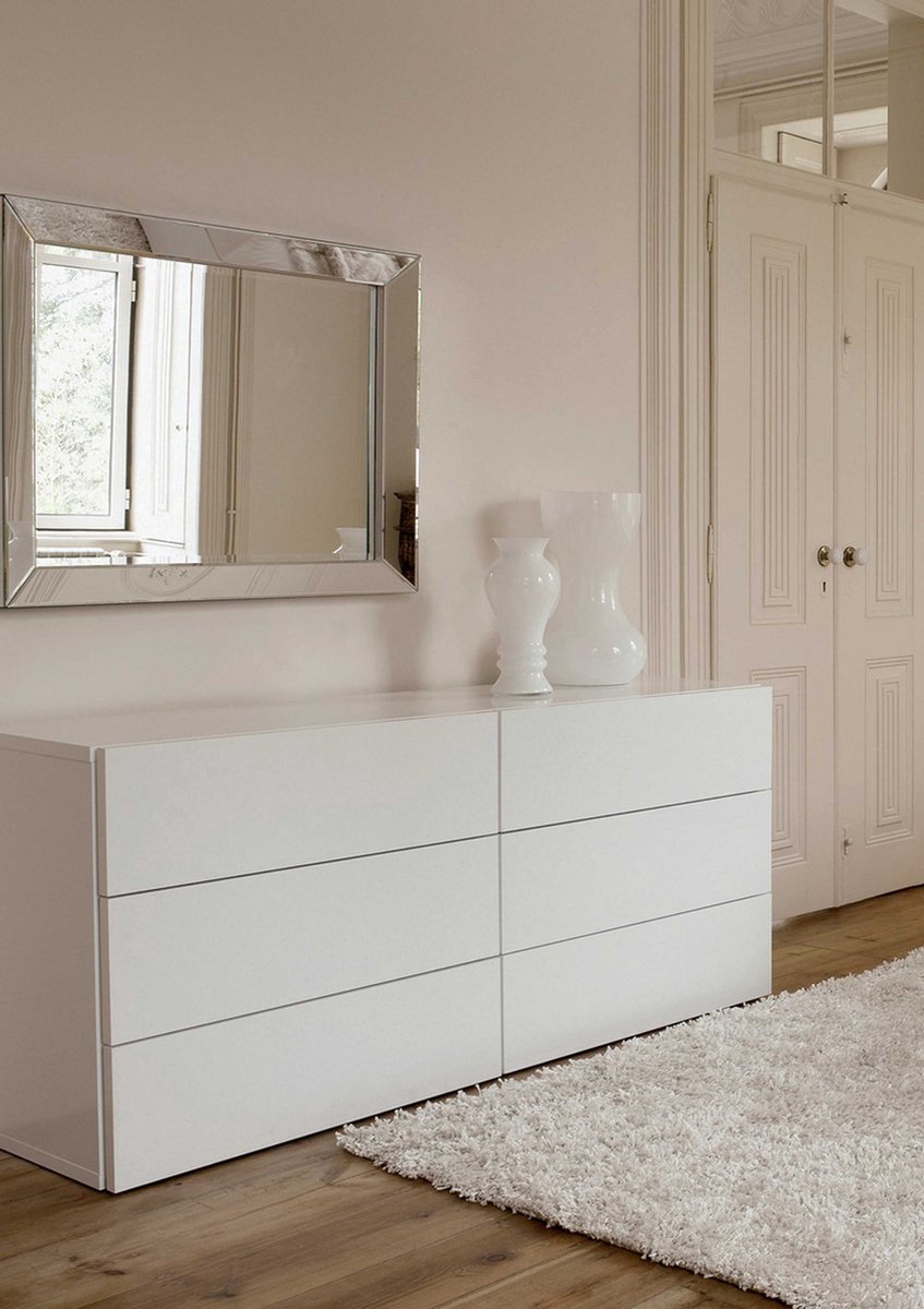 With its classic, contemporary design, you can give your bedroom a simple elegant, and glamorous look. Featuring six spacious drawers. Made up of synthetic wood in white color with a high gloss finish. This modern chest drawer features six generously proportioned drawers which are perfect for adding much-needed storage space to the home. The handle-free design of these drawers allows them to be opened from the top and gives a minimalist feel to this Chester.