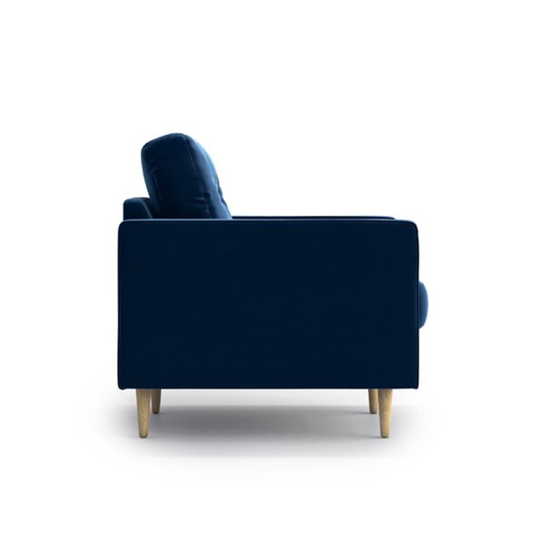 Just because you have a small space doesn’t mean you can’t have big style. This mid-century modern armchair will give your living room major style points. Crafted from solid wood with velvet fabric upholstered material. The Scandinavian-inspired design features a button back, sleek silhouette and tapered wooden legs. This sofa is available in navy blue color to suit your existing décor.