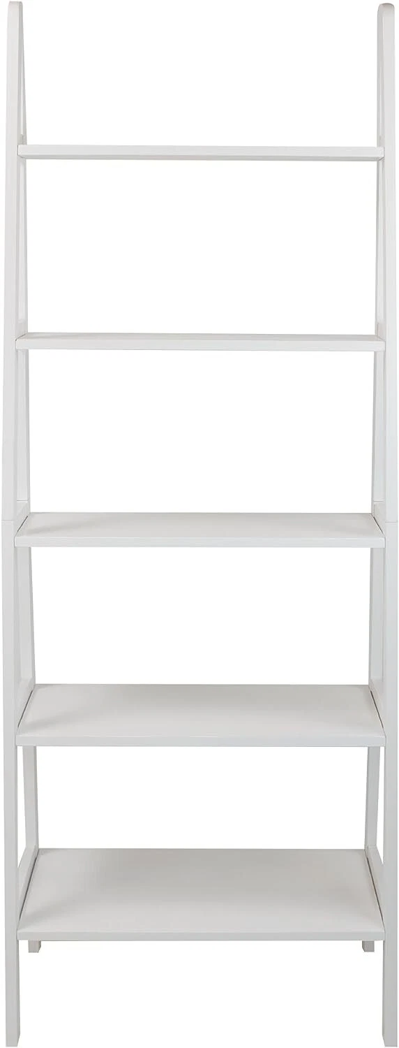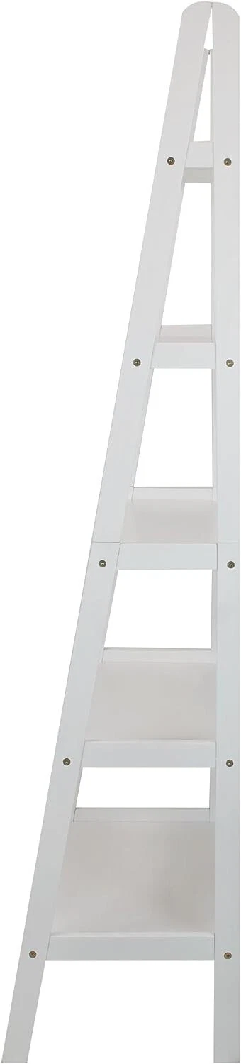 This tapered, wide-base ladder bookcase features five spacious shelves that are great for displaying books, décor favorites, collectibles, and other essentials. The unique aesthetic design of this 5-Shelf Ladder Bookcase is sure to transform any interior space you style it in. Crafted from solid & synthetic wood.& available in white deco paint finish. It provides versatile storage while taking minimal space.