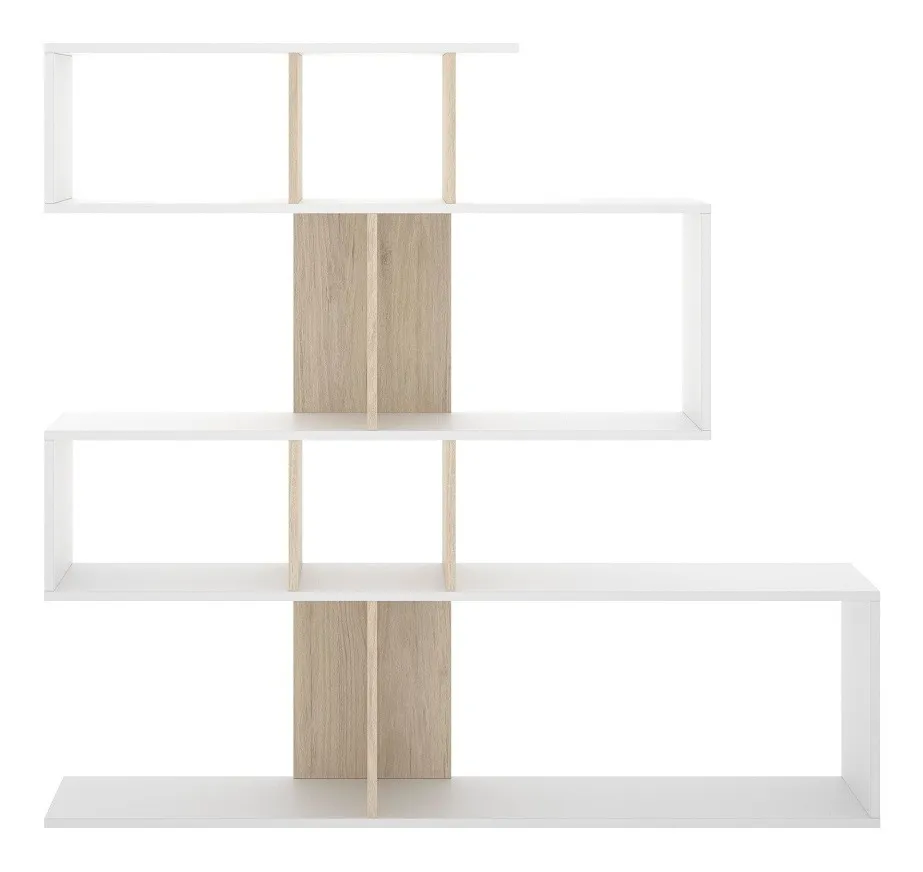 Store all of the books you totally did read in style with this sleek bookcase. A perfect match to your modern master bedroom or stylish living room. The Nordic zig-zag design has clean lines and shelves of different heights that provide plenty of room to display novels, plants, or favorite knick-knacks. Made from manufactured wood in white & oak brown colors with a high gloss finish. If you are looking for a bookcase with large storage capacity and a fun touch for the living room, this is the bookcase.