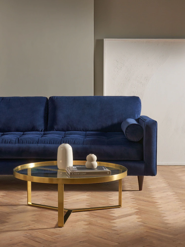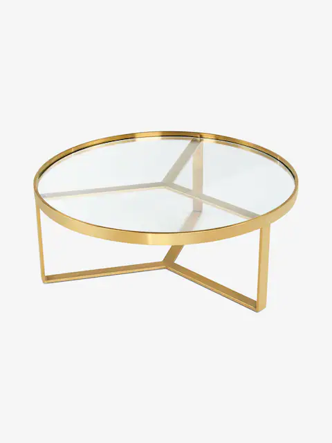 Add a feel of glamour with its minimal design. Available in a clear glass top. It is manufactured with a metallic frame in a golden deco paint finish. A classic geometric shape elevates its style. Trendy design for the living room interior and decor. Pair it with any color sofa, and it will deliver a modern and luxe look easily. It will make a statement piece in the long run.