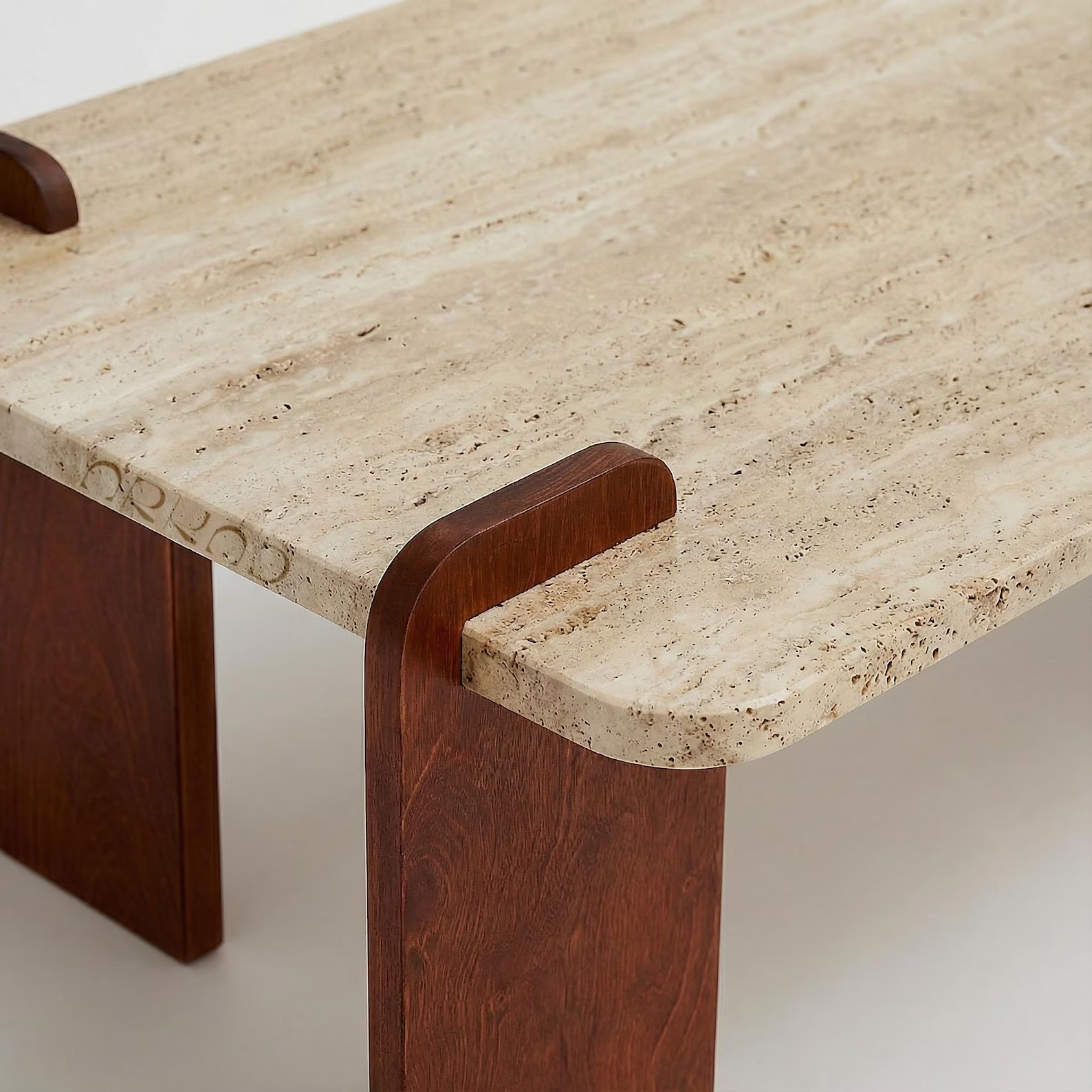 TRIVO – Travertine Coffee Table with Solid Wood Base